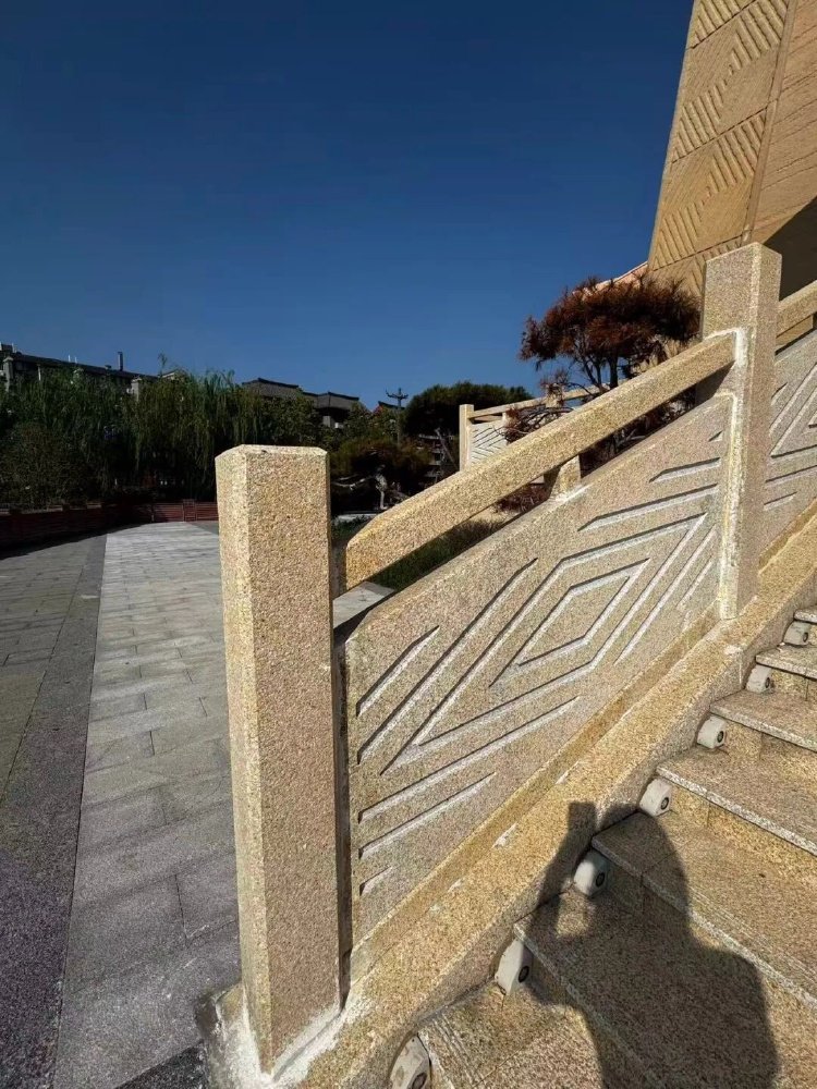 李女士提供的图片中,台阶左侧的石柱扶栏底部与顶部的接合处,均有白色物质,“断裂处没有看到钢筋水泥,看起来是一种黏合剂。”她说。