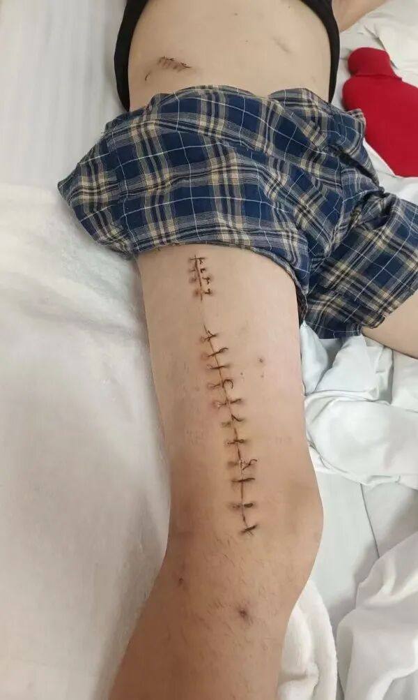 李女士在腾讯新闻“热问”发声称,父亲经过手术,腿部植入了一块20多公分的钢板、10个钢钉,并从腰间取出一块骨头植骨在膝盖处,韧带和半月板多处严重损伤。