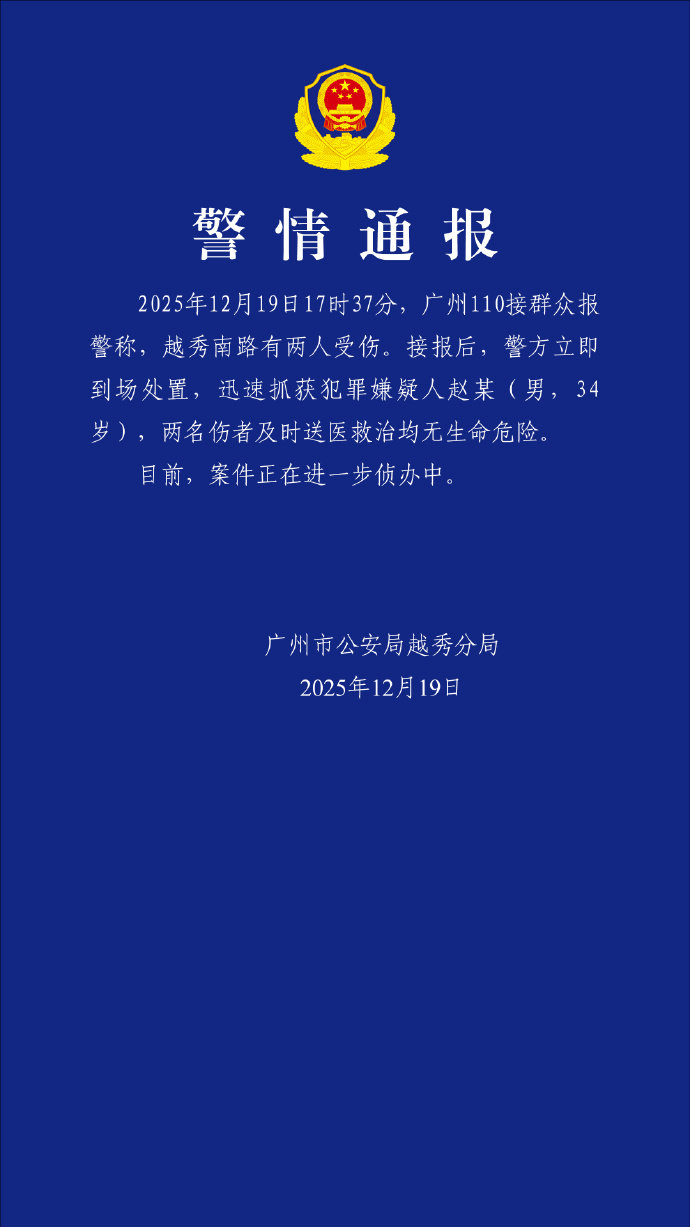 广州越秀南路有两人受伤,警方通报:抓获犯罪嫌疑人