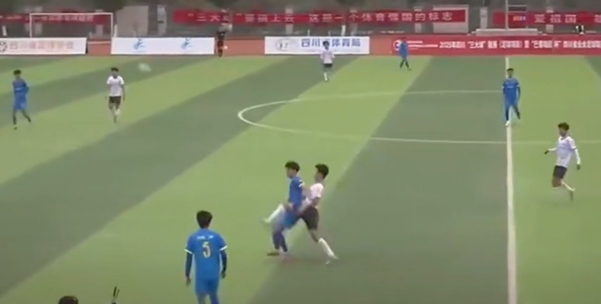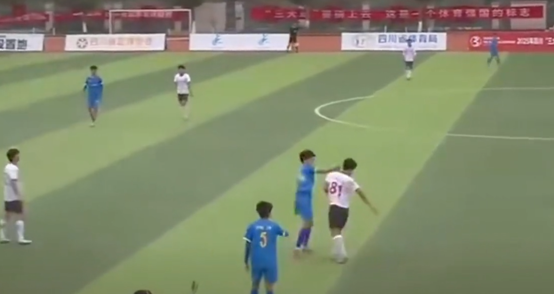 12月21日,一段四川业余足球联赛上发生的球场暴力视频引发球迷圈关注。视频中身穿蓝色球衣的宜宾队34号球员,在身穿白色球衣的自贡队81号球员贴身防守解围后恼羞成怒,转身一拳将后者击倒在地,随后打人的34号球员现场被警方带走。12月22日,上游新闻(报料邮箱:baoliaosy@163.com)记者对此事进行了追踪。