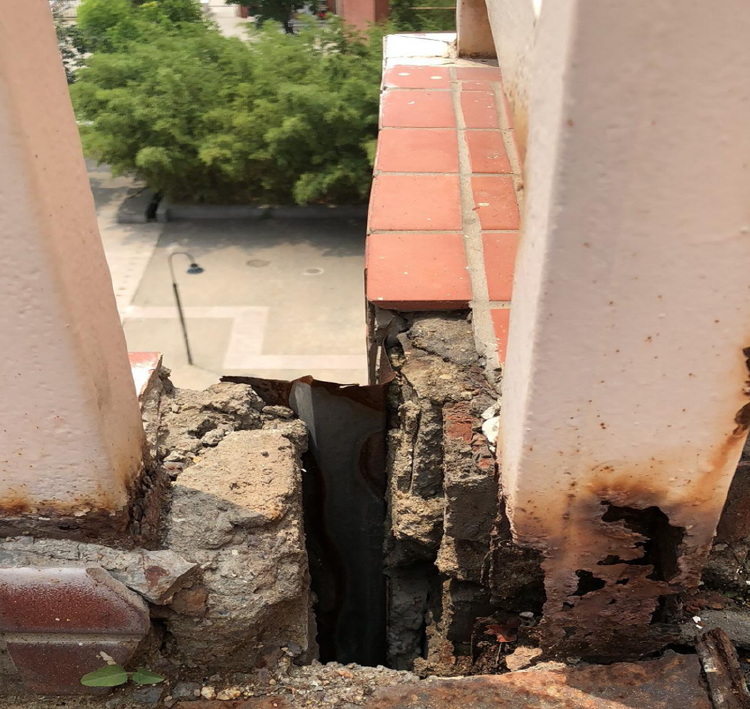 2018年7月,事发教学楼锈蚀的栏杆。受访者供图