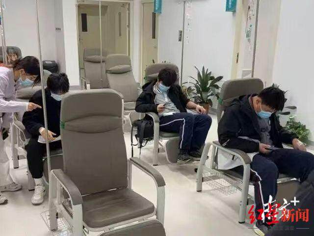 华大星晖高级中学学生在医院输液治疗 图据南方日报