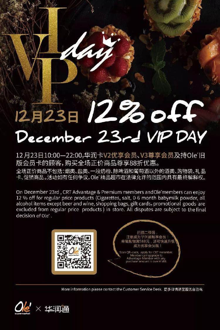 2017年,就剩下十几天啦!年初定下的小目标都完成没?如果没有就赶紧行动。作为2017年最后一波会员专属的超级大福利,Ole'超市12月23日VIP DAY,会员全场88折!