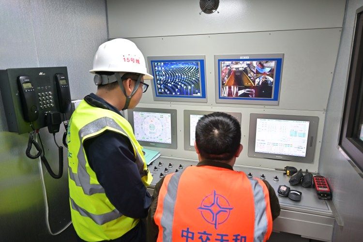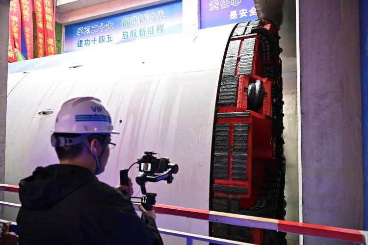 项目施工现场,中国交通建设股份有限公司物资设备部部长张志奇告诉上游新闻记者,曾家站-大学城中路站区间采用土压平衡式盾构机掘进施工,盾构区间左线全长2683米,隧道平均覆土厚度为20.71米,最小覆土厚度为8.44米,为单洞单线盾构隧道,由曾家站大里程端头设盾构井始发,在大学城中路站小里程端设接收井调吊出。