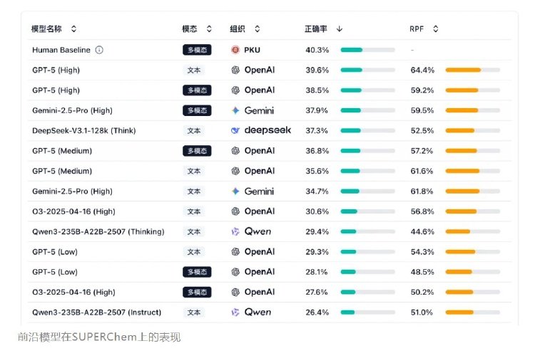 在这场精心设计的考试中,人类展现出了复杂的科学直觉。作为基线,参与测试的北大化院本科生取得了40.3%的平均准确率。这个数字本身,就足以说明这套题目的硬核程度。