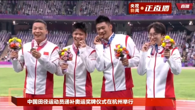 央视新闻消息,10月4日晚,杭州亚运会田径比赛结束后,中国奥委会在杭州奥体中心体育场举行递补奥运奖牌颁奖仪式。