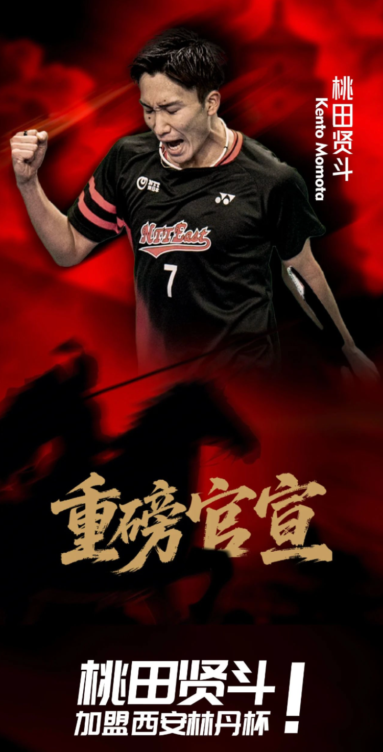 林丹杯官宣桃田贤斗将参赛。 图据林丹杯公众号