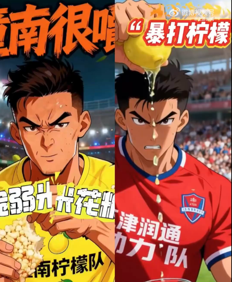渝西赛区的江津队,率先发布趣味十足的创意视频,主题是“暴打柠檬”(潼南柠檬队),配文“柠檬就是杯饮料,这些才是主菜”,画面下方是江津地方特色菜:酸菜鱼、尖椒鸡……片尾直接喊话潼南:Are you ready(你准备好了吗)?潼南柠檬队随后也发出视频反击,声称“潼南很嚼”,“脆弱米花糖”,要“手捏米花糖”。