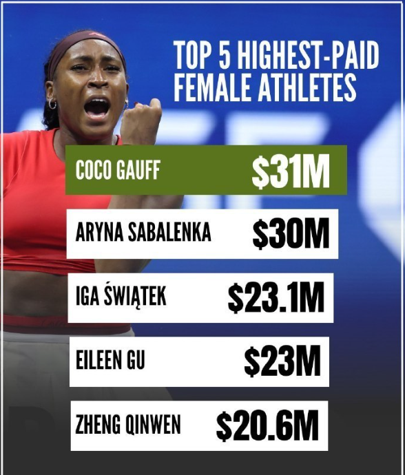 1-高芙,网球,3100万(800万奖金+2300万场外)