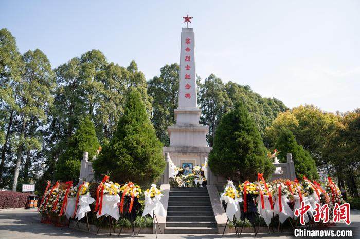 图为屏南县革命烈士陵园摆满祭奠陈祥榕的花篮和鲜花。陈伟杰 摄