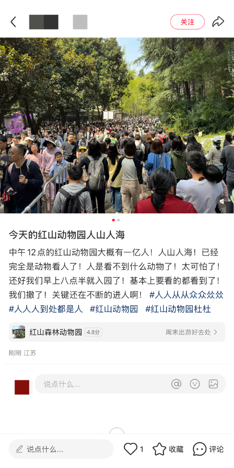 有网友戏称,逛景点逛出了“推背感”。红山动物园人头攒动,网友称已经是“动物看人”了。