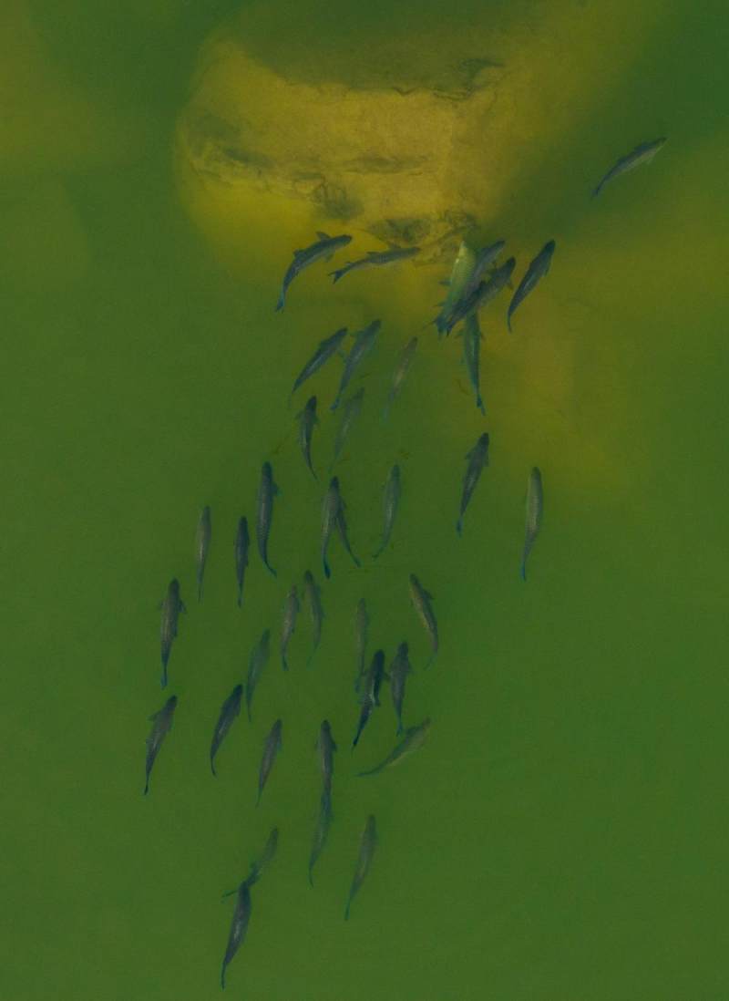 广阳岛江边鱼群游上水面 通讯员 郭旭 摄