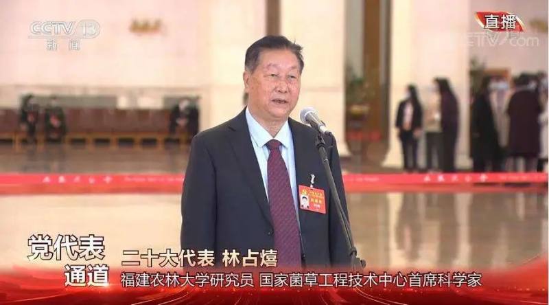 他是国家菌草工程技术研究中心首席科学家林占熺。他从山林里走出,来到了二十大“党代表通道”上。