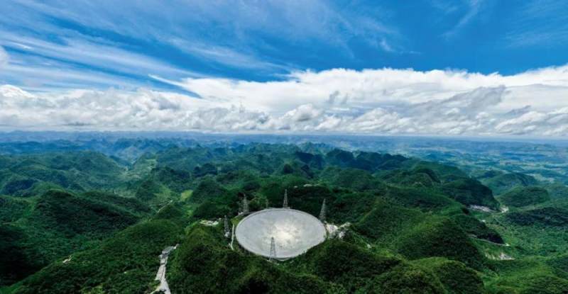 位于贵州平塘县克度镇的“中国天眼”——世界上最大、最灵敏的单口径射电望远镜。图/新华