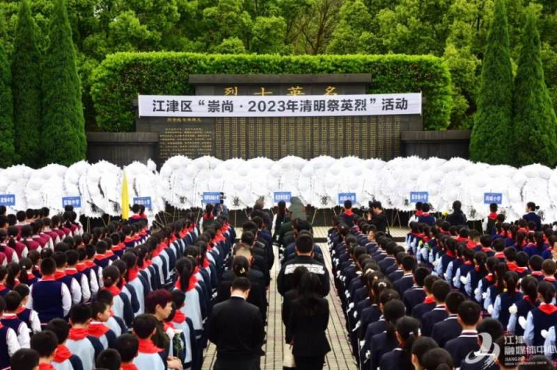 4月4日,江津区“崇尚·2023年清明祭英烈”活动在艾坪山烈士陵园举行,700余名干部群众、中小学生齐聚在此祭奠烈士英灵,缅怀烈士们的丰功伟绩,表达对革命烈士的深切悼念和无尽哀思。