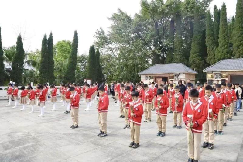 大家整齐地站在烈士陵园英名墙前,鞠躬默哀、聆听革命先烈英勇事迹,进行庄严宣誓,江津区学生代表作讲演,号召同学们要发愤图强,学习先辈的爱国主义精神。仪式结束后,全体人员绕行烈士墓一周,敬献鲜花。