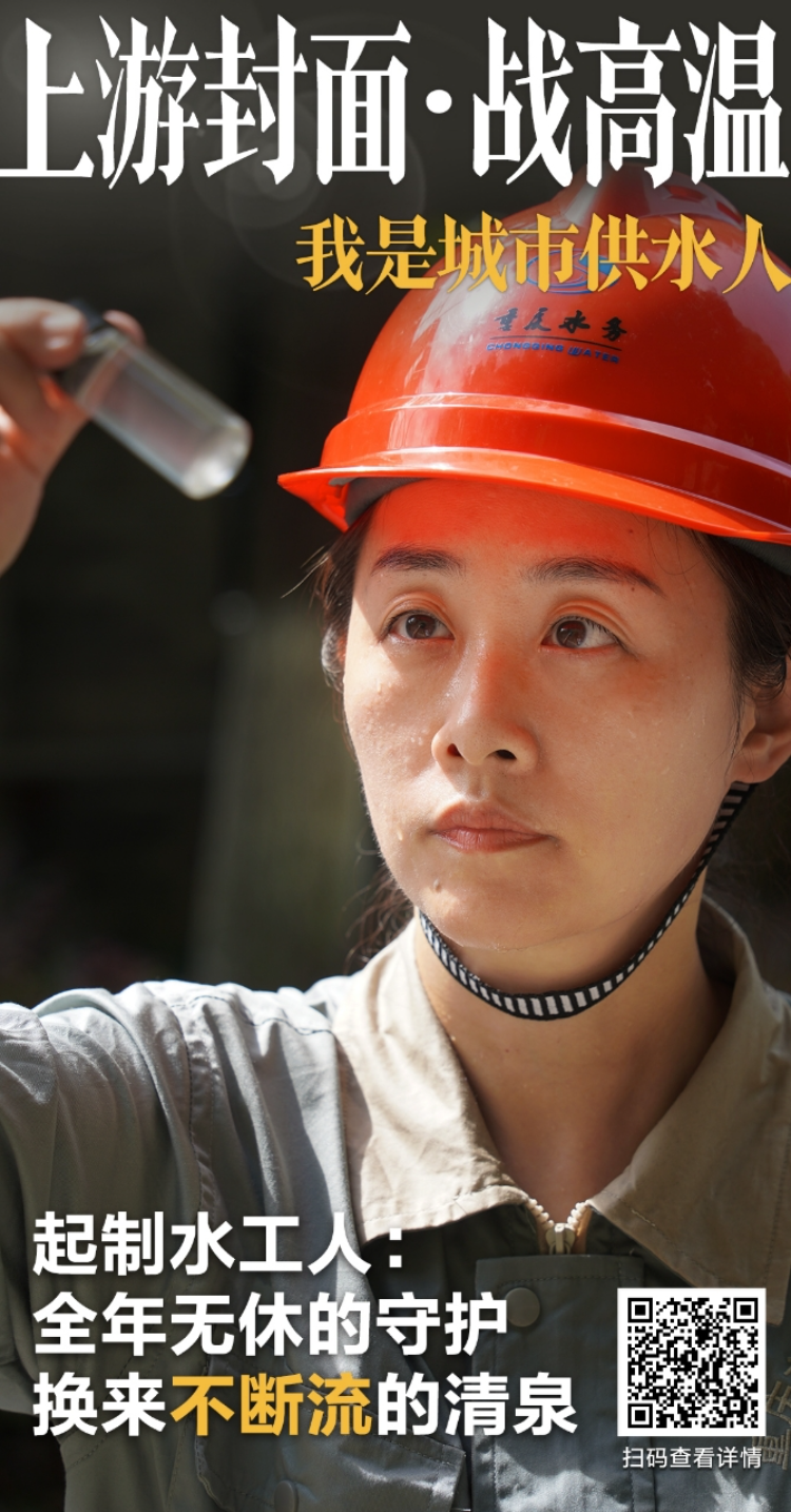 张玥和同事带着检测设备开始了白班的第一轮巡检。不一会儿,她的工装后背就被汗水浸湿,但她顾不上擦拭,快步走向原水取样点。张玥是南岸区白洋滩水厂运行组组长,也是一名基层起制水工人。这样的巡检工作,是她每天重复的“必修课”——确保每一滴流进千家万户的自来水,都清澈、安全。