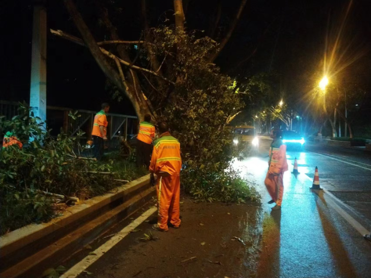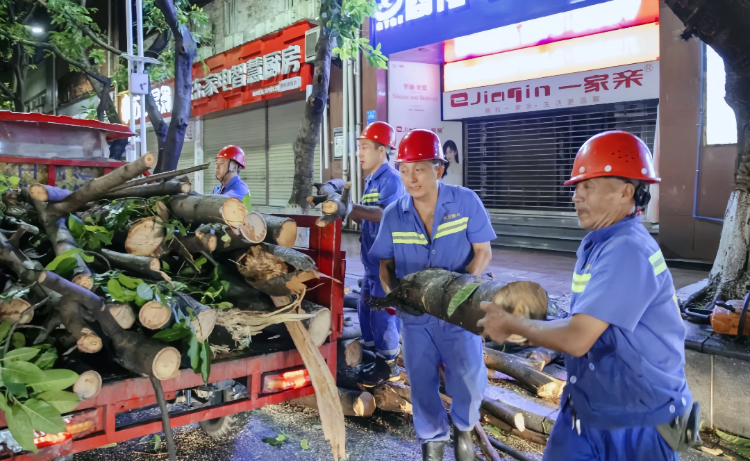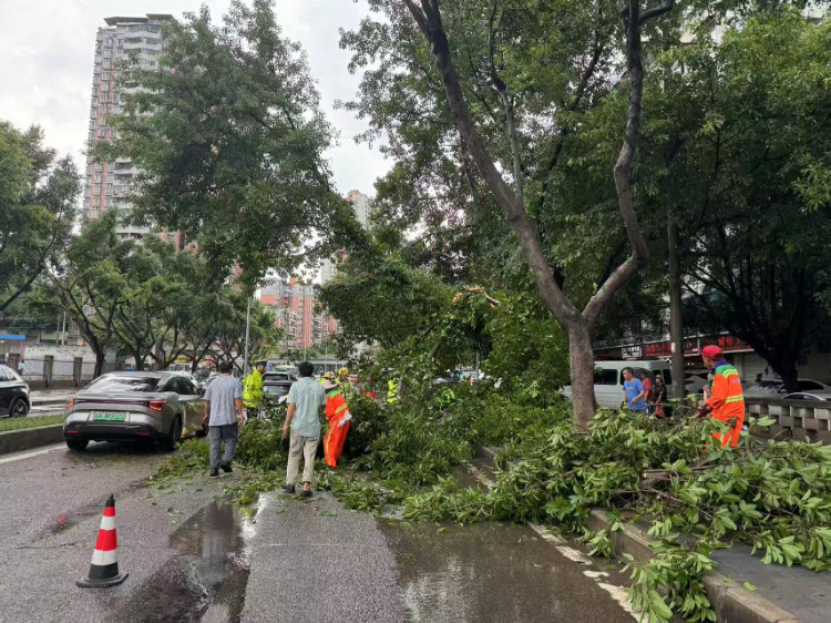 绿化、环卫、交巡警等多部门协同处理倒树、断枝。