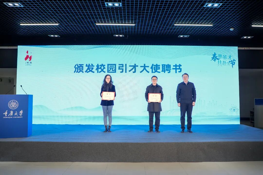 推介会现场播放了青年人才工作宣传片,全方位展现了奉节独特的城市魅力与蓬勃的发展活力。三所高校相关负责人分别致辞欢迎,表达了校地携手、共育人才的合作愿景。县领导黄双双详细介绍了奉节县公务员及选调生招考安排、高校毕业生就业创业政策;县人力社保局负责人就事业单位招聘、“三支一扶”计划、西部计划志愿者招募等相关安排进行解读;三家县属国企负责人依次作推介发言,部分往届校友代表结合自身在奉节的成长经历,真挚分享了工作体会与发展感悟。推介会上,吴涛还为校园“引才大使”颁发证书,旨在进一步凝聚青年力量,吸引更多人才汇聚奉节、共建奉节。