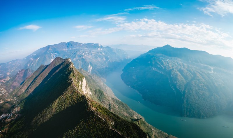冬日的巫峡正处最美红叶季,碧绿的江水像一条绸带蜿蜒流淌,两岸的青山被层层红叶包裹,红得像火焰,游船穿行其间,活脱脱一幅“船在江中走,人在画中游”的立体画卷。