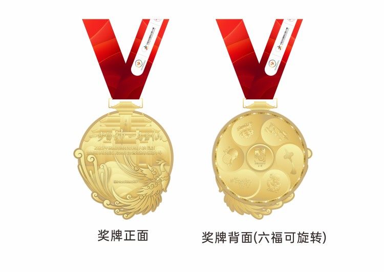 完赛奖牌设计极具丰都辨识度,正面融合丰都名山建筑轮廓与凤凰图腾,背面创新采用可旋转的“福、禄、寿、喜、财、安”六福图案。这枚奖牌超越传统荣誉象征,成为可互动、可收藏的文化载体,寓意将丰都福运“转”回家,让赛事记忆转化为持久的文化纪念。