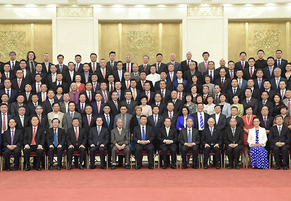 5月28日,党和国家领导人习近平、汪洋等在北京人民大会堂会见第九届世界华侨华人社团联谊大会和中华海外联谊会五届一次理事大会全体代表。 新华社记者 李学仁 摄