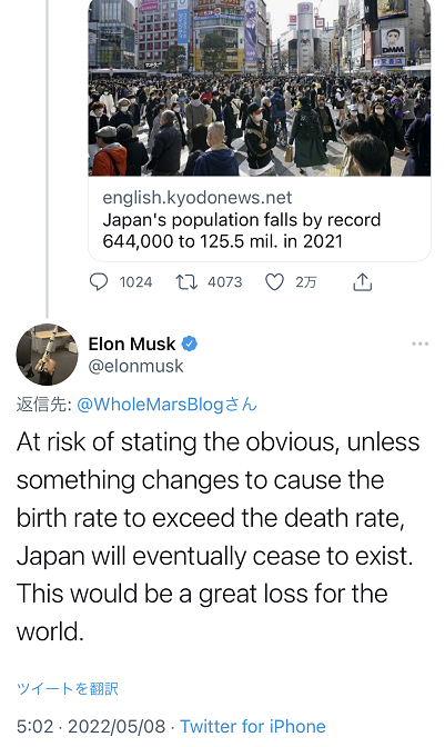 原标题:马斯克就日本人口减少发警告:若无改变“日本最终会不复存在”,日本网民热议
