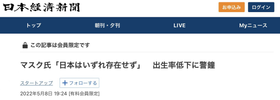 《日本经济新闻》:马斯克说,“日本最终会不复存在”,为出生率下降敲响警钟