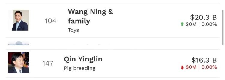 顶端新闻消息,今天上午,根据福布斯实时富豪榜,泡泡玛特(09992.HK)创始人王宁目前身家为203亿美元,牧原股份(002714.SZ)创始人秦英林身家为163亿美元。王宁已取代秦英林,成为河南新首富。
