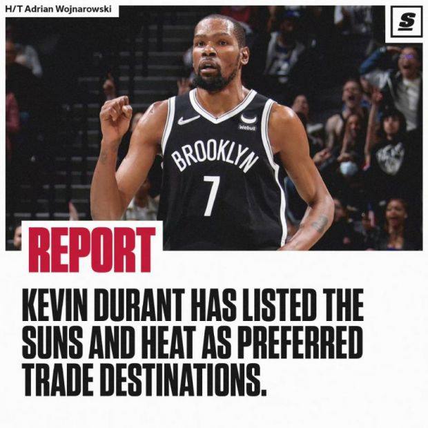1日,NBA传来爆炸性新闻——34岁的凯文·杜兰特正式向篮网队提出了申请交易,并明确希望加盟太阳或者热火队。要知道,杜兰特与篮网队的合同还剩下四年,总价在1.94亿美元。很多球迷对于杜兰特这样的“背叛”感到愤怒:“球队是你选的,欧文是你选的,教练纳什是你选的,大伤后老板蔡崇信养了你一年,无条件奉上顶薪,结果到头来你又不干人事!感觉球队不能夺冠,又要跑路了!”