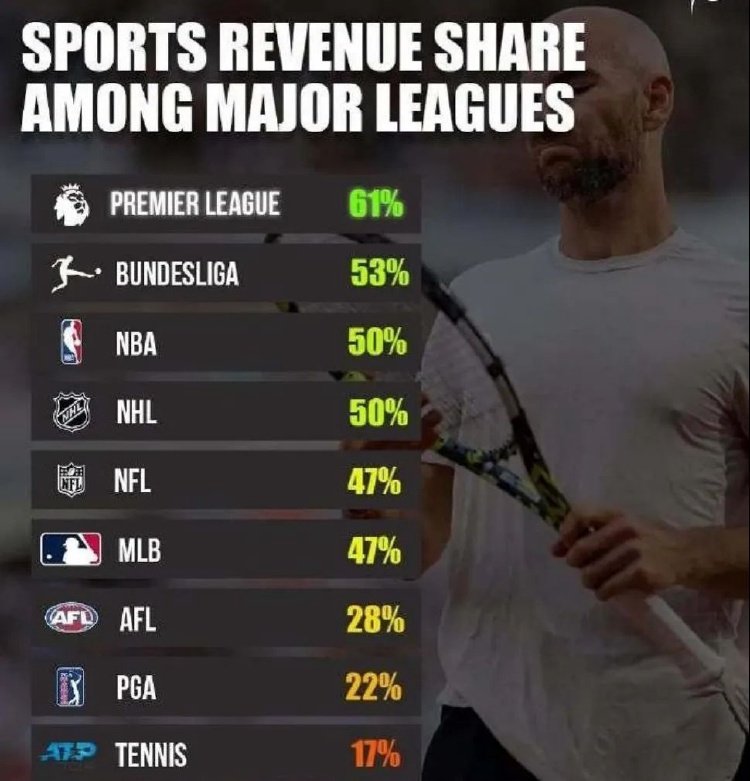 “单纯横向对比,网球的分配比例肯定是比较低的。”网球评论员胡力涛对中国新闻周刊分析称,“NBA等北美体育联盟分得多,是因为这些联盟均属于单一国家联赛,各队赛季时长大约在半年到三个季度左右,过程中联盟一直有持续的曝光和收入。”