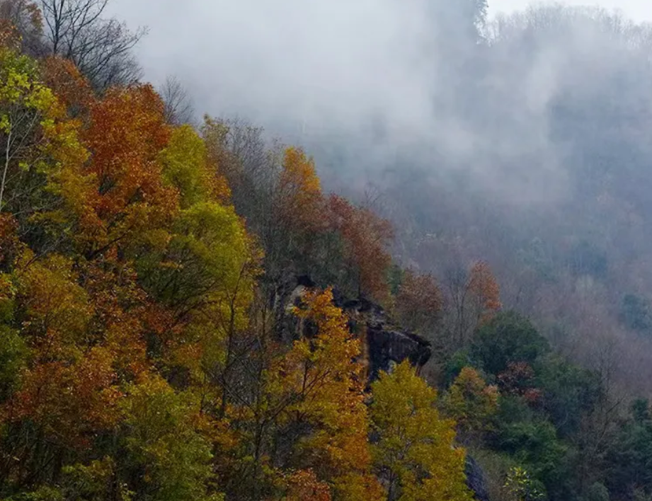 大巴山的秋美丽醉人,金秋时节,这里彩叶斑斓,层林尽染,壮美景色如同大自然最绚烂的调色盘,火红、橘红、紫红,层层叠叠,夹杂着黄与绿,色彩交织,十分丰富。