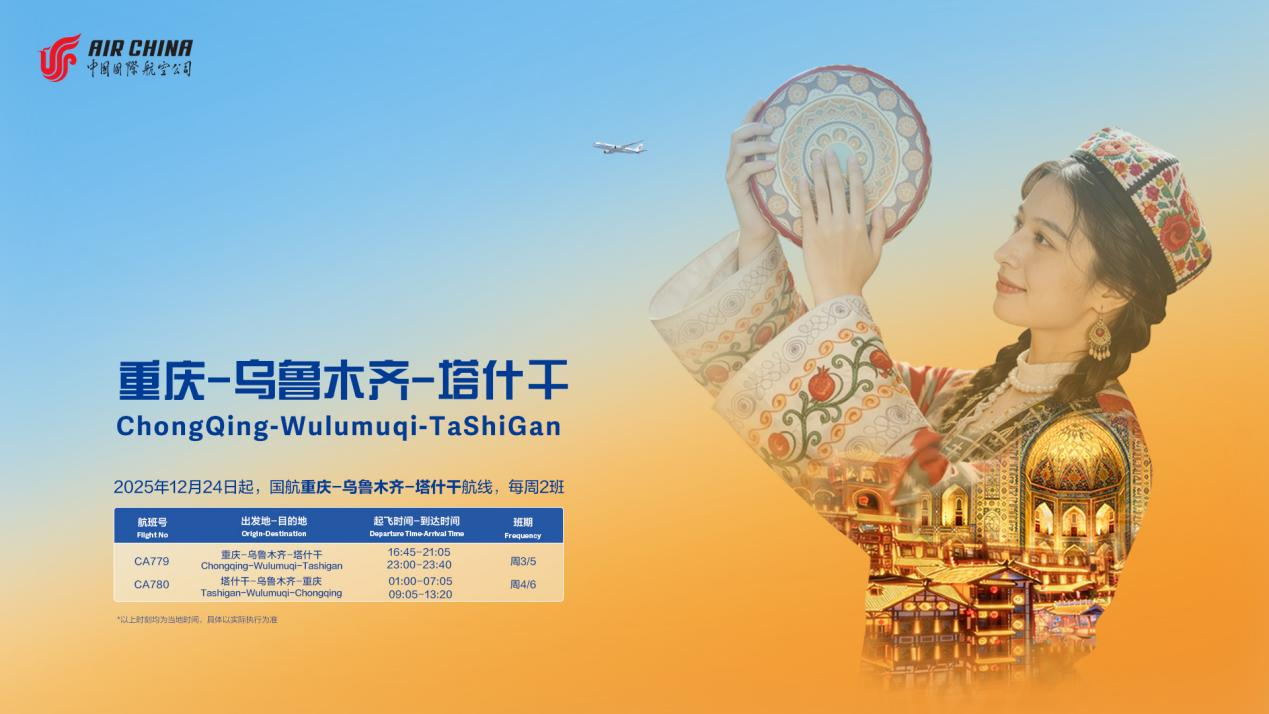 原标题:国航重庆⇌乌鲁木齐⇌塔什干航线12月24日开航
