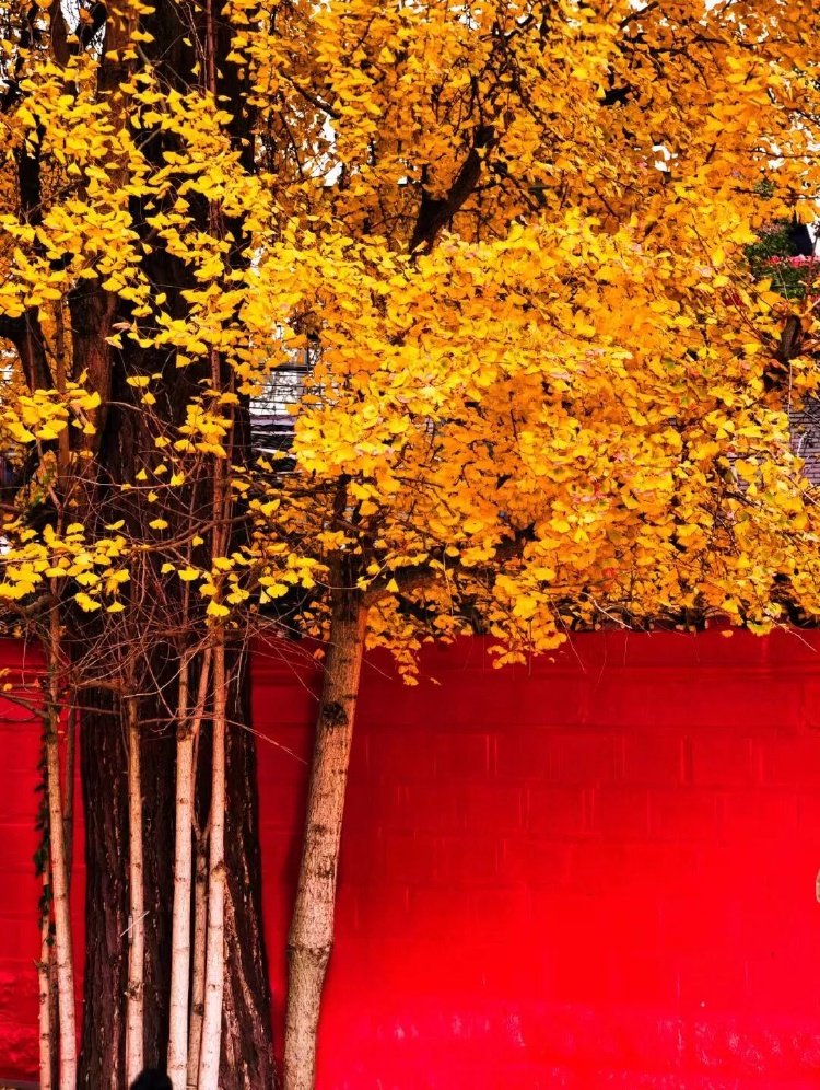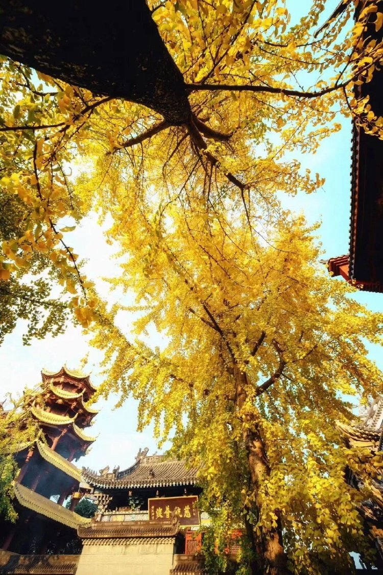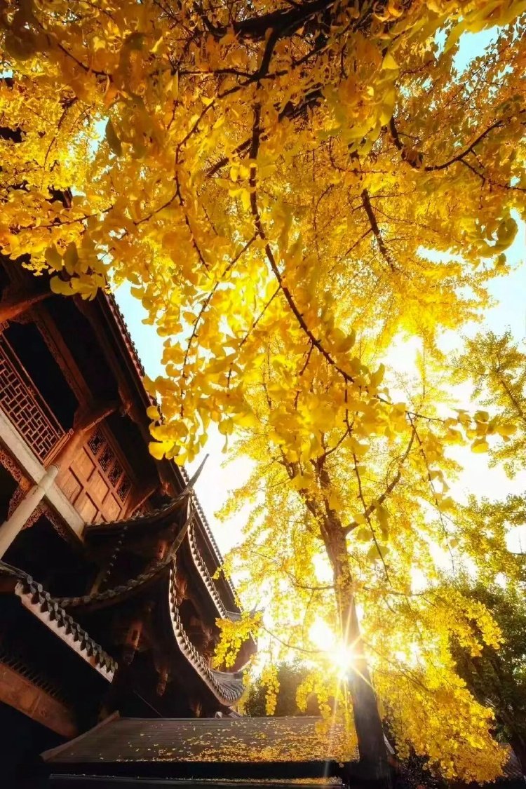 清幽古寺与金黄银杏相映成趣,飞檐翘角在灿烂的阳光下更显庄重,随手一拍即成电影感大片。