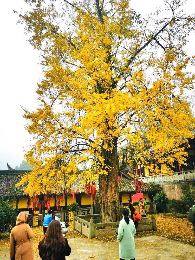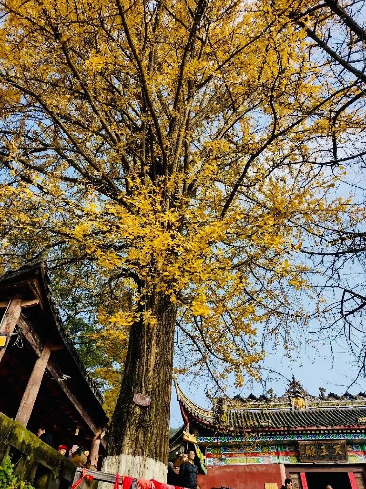 在北碚区静观镇的塔坪寺,几棵百年银杏的“浓度”已达到顶峰,汇聚成了金黄的海洋。