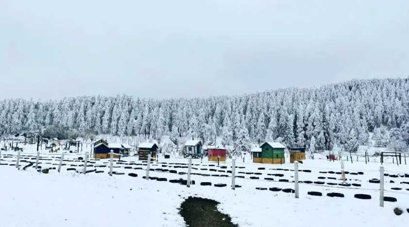 徜徉在仙女山雪地里,到处都能看见北欧风格的小木屋,登临“森林之眼”俯瞰林海雪原,整个世界都化作白色。