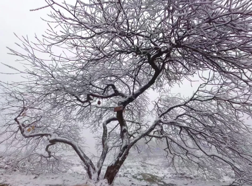 每年冬季,金佛山便会在一场冬雪中,呈现出“千树万树梨花开”的盛景,那绽放在枝头的朵朵银花,其灿烂程度丝毫不逊于雪梅和冬樱。