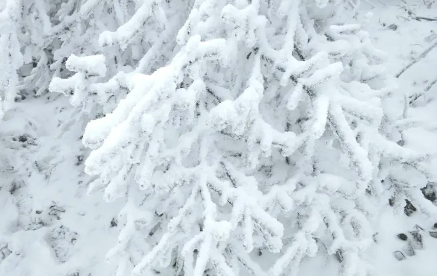 清晨雾凇奇观令人叹为观止,树枝挂满冰晶,阳光照射下闪着银光,仿佛走进冰雪王国,此外,这里还有开州与巫溪的界碑打卡点,站在垭口能同时望到两个区县的风光。