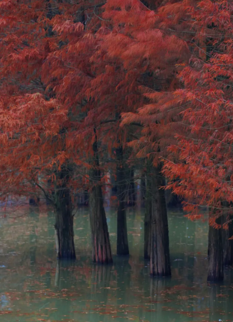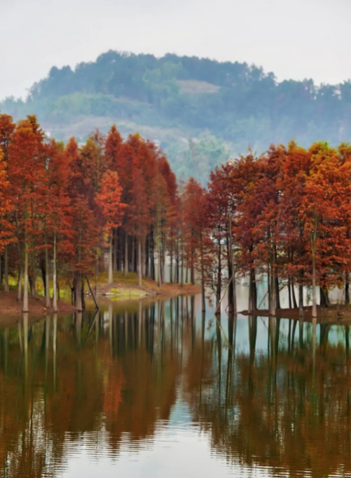 一到初冬,重庆藏在山野间、湖畔旁的水杉林,悄悄换上了“焦糖色盛装”,美成一幅油画。