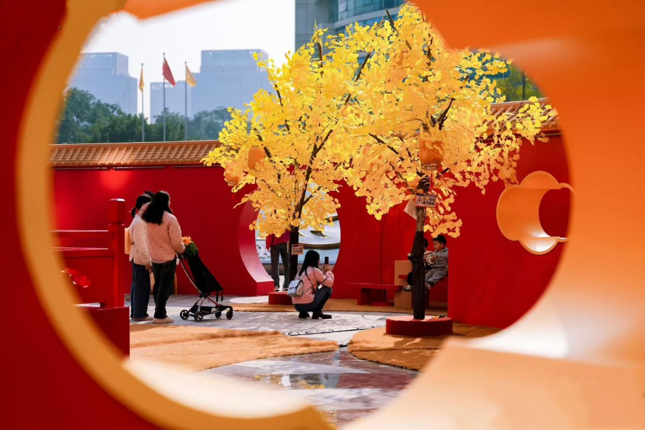 星汇两江艺术商业中心80米限定红墙吸引市民打卡。