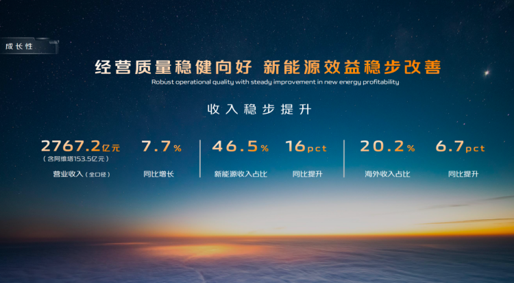 4月11日,长安汽车在重庆举行2024年度业绩说明会。上游新闻汽车频道从会上获悉:2024年长安汽车营收(全口径)2767.2亿元(含阿维塔153.5亿元),同比增长7.7%。其中,自主板块新能源收入占比达46.5%,同比提升16个百分点;海外销售收入占比20.2%,同比提升6.7个百分点。