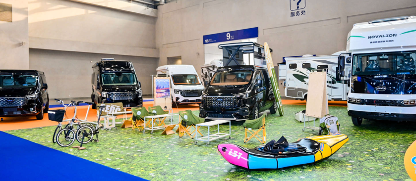 房车生活节专区同样引人注目,驿舟、优特尔、长安、大通等房车品牌带来多款科技感与设计感兼备的前沿产品。现场展出长安跨越原厂新能源增程C型房车、比亚迪自由极客B+Max双扩展房车等热门车型,并提供个性化定制服务。组委会还联合多家露营装备商与露营基地,真实还原野趣场景,帐篷、天幕、炊具、灯光等装备一应俱全,让观众沉浸式体验最新潮的户外露营生活方式。