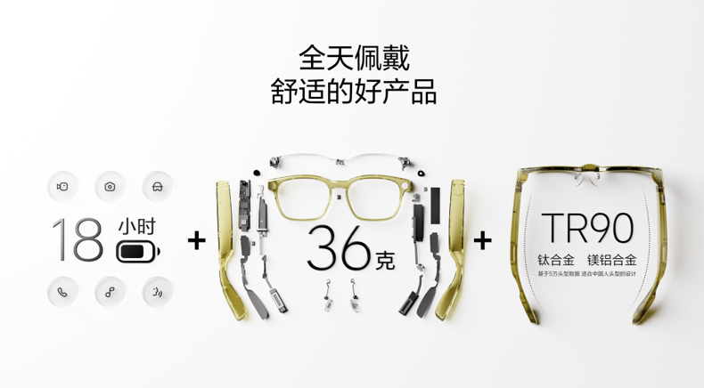 在散热方面,Livis创新性地将主发热器件朝外布局,结合2177mm²石墨散热材料与智能温控算法,确保长时间佩戴温度舒适。IP54级防尘防水设计,使产品轻松应对日常雨水和灰尘。续航表现同样出色:模拟日常使用场景下,Livis可连续工作18.8小时;待机状态下,续航长达78小时。全系标配的无线充电眼镜盒可为眼镜提供4次完整充电。
