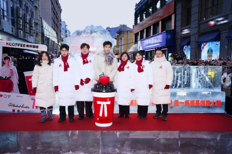 12月29日,肯悦咖啡在哈尔滨中央大街举办了一场别开生面的“红苹果心愿季”冰雕点灯仪式。肯悦咖啡的巨型红色咖啡杯造型冰雕搭配“水晶”苹果,十分吸睛。品牌代言人白敬亭亲临现场,与众多市民和咖啡爱好者共同点亮了灯光装置。当按下肯悦咖啡杯上的互动按钮,整座冰雕怦然亮起,呈现出红苹果的明媚色彩,为冰城冬夜增添了暖意与活力。