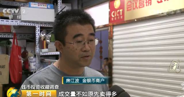 金银币商户 房江波:成交量不如原先卖得多,比如说原先每天能卖二三十套,四五十套,现在每天可能只能卖三四套。