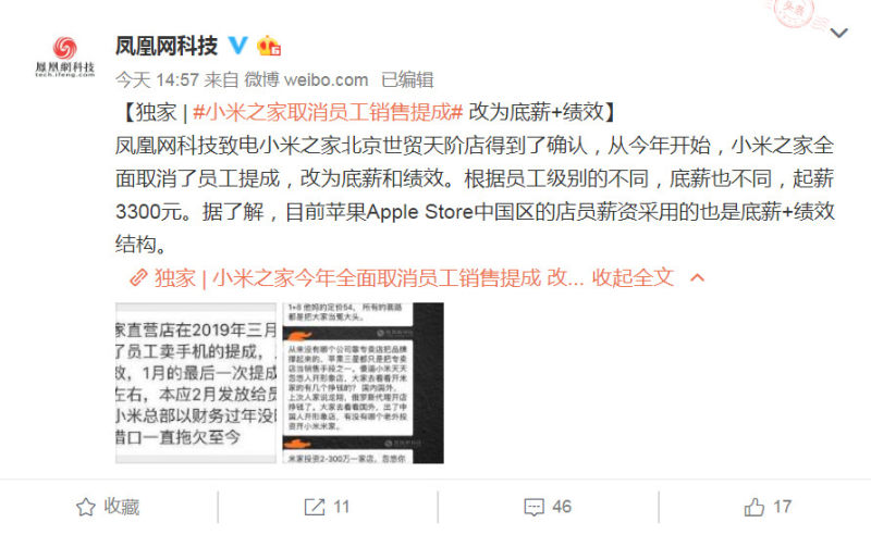 小米之家取消员工销售提成改“底薪+绩效”?公司回应:此报道完全失实