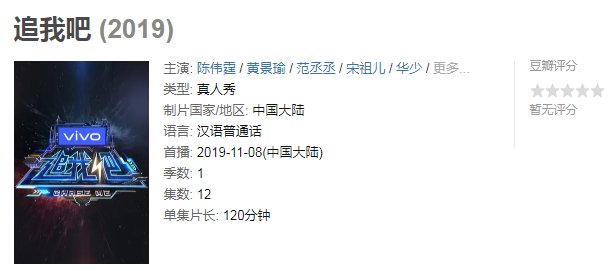据悉,《追我吧》首期播出4天,豆瓣还没有开分,评价人数不足200人。