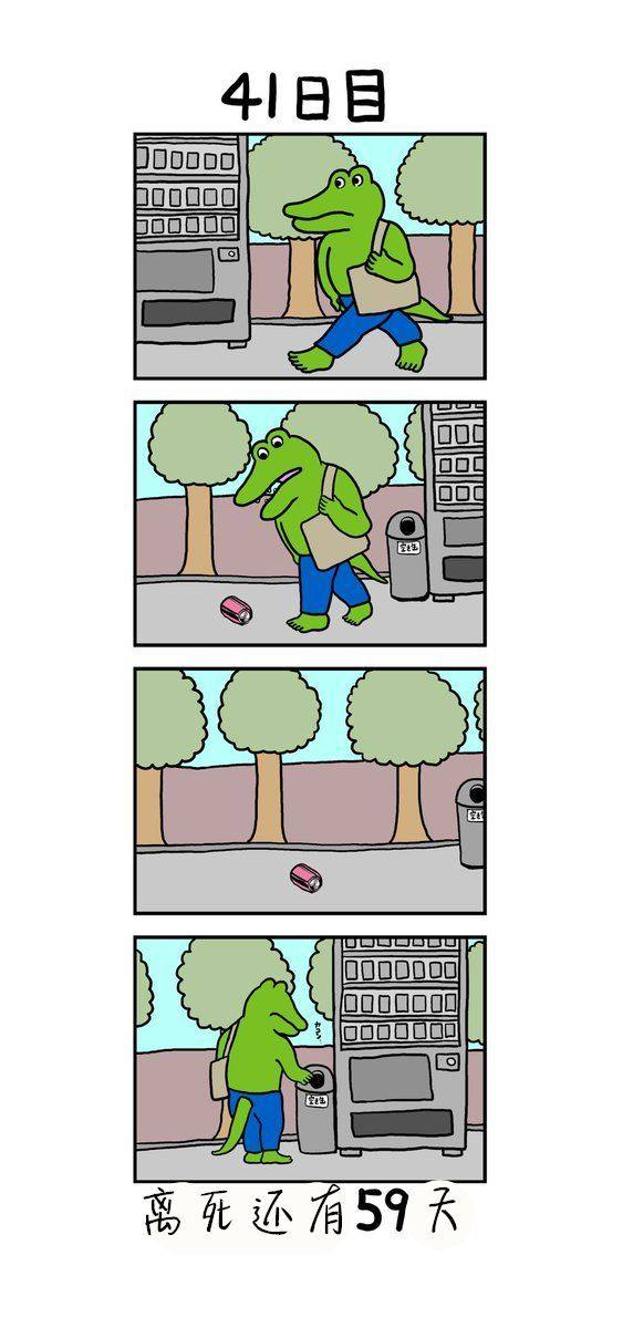 在还剩59天时,鳄鱼捡起了地上的易拉罐。