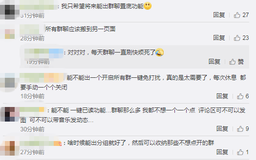 就此,上班的网友表示很赞,这给微信群的整理带来了很多方便。也网友表示,修改备注的功能也没什么用,大家最想要的还是“群聊置底功能”。