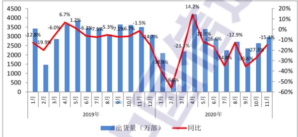 如果是从智能手机的发展情况来看,不管是11月还是1至11月的数据,智能手机的出货量以及上市新机型同比均是下降的。